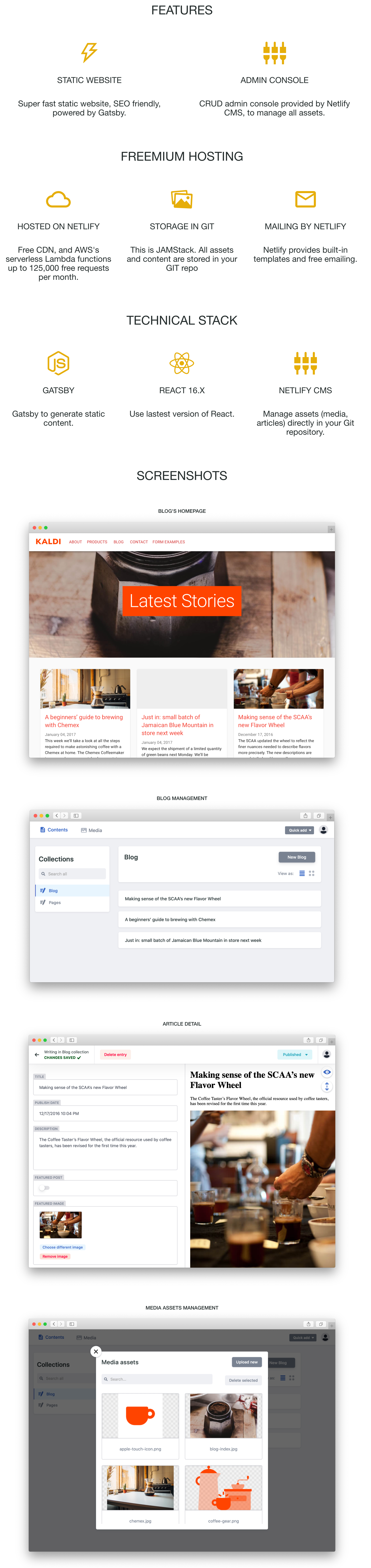 This project is a port of the Netlify template gatsby-starter-netlify-cms on Bootstrap, Material UI and Tailwind CSS. Just choose your favorite CSS framework!